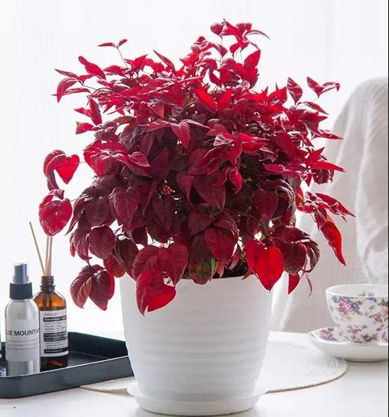 火焰南天竹為南天竹新品種?;鹧婺咸熘袷且环N優(yōu)良的彩葉植物、常綠小灌木。該植物高可達40厘米,葉片卵形、長卵形或卵狀長橢圓形,入冬呈紅色,總?cè)~柄較。它喜光耐陰,喜溫暖濕潤的氣候。12月中下旬當氣溫低于5攝氏度持續(xù)一周時,葉片開始變紅,經(jīng)霜不落,可持續(xù)到來年3-4月,葉色艷麗。